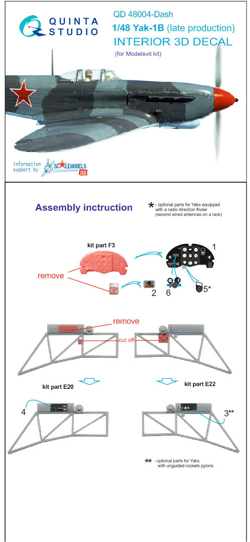 QD48004Dash 3D Декаль интерьера кабины Як-1Б (для модели Моделсвит) Quinta Studio в Барнауле, купить в интернет-магазине, цены, фото